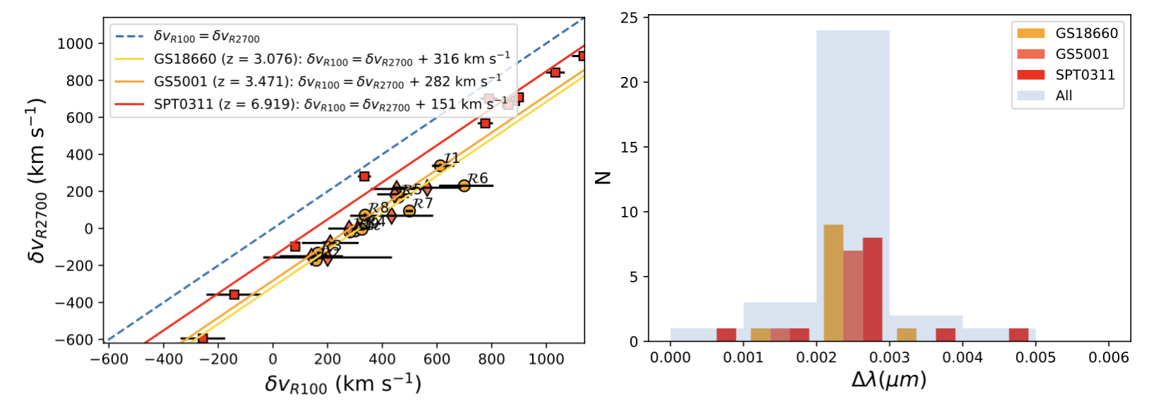 In Perna et al. (2026), we investigate the wavelength calibration accuracy of the NIRSpec R100 data, by comparing the observed velocities of